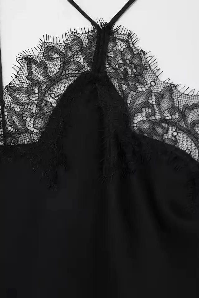 Das raffinierte asymmetrische Design mit feinen Spaghettiträgern und romantischer Spitzenverzierung am Saum und Dekolleté verleiht dem Kleid eine edle Note. Perfekt für besondere Abende, luxuriöse Nächte oder als elegantes Statement-Piece im Alltag.