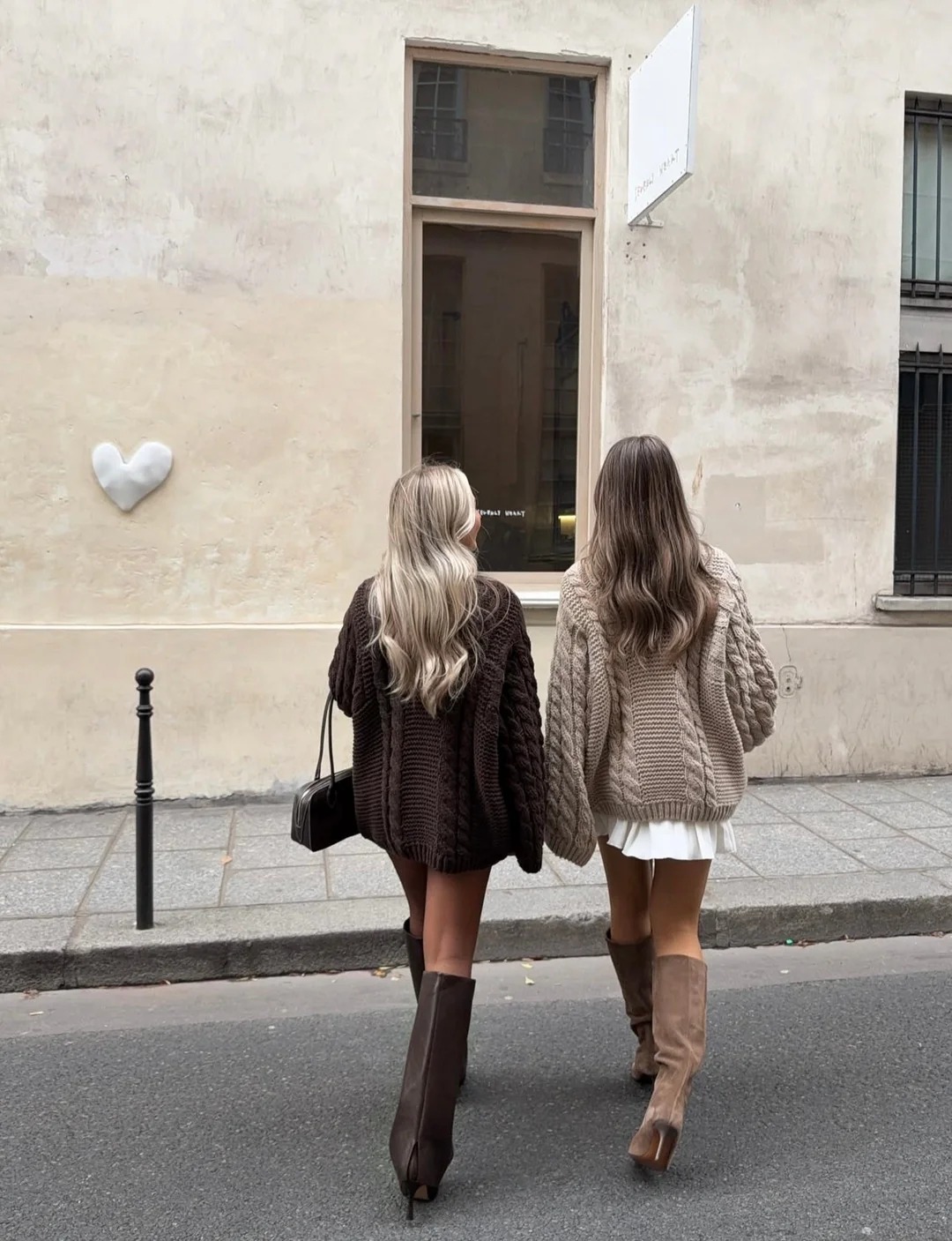 This luxurious oversized knit sweater is a must-have for the colder season. With its voluminous cable knit, wide sleeves, and relaxed fit, it combines ultimate comfort with timeless style. The soft round neck ensures a comfortable fit, while the handmade-looking design adds a modern, Scandinavian touch to any outfit. Perfect for cozy winter days at home or as a statement piece in the city.